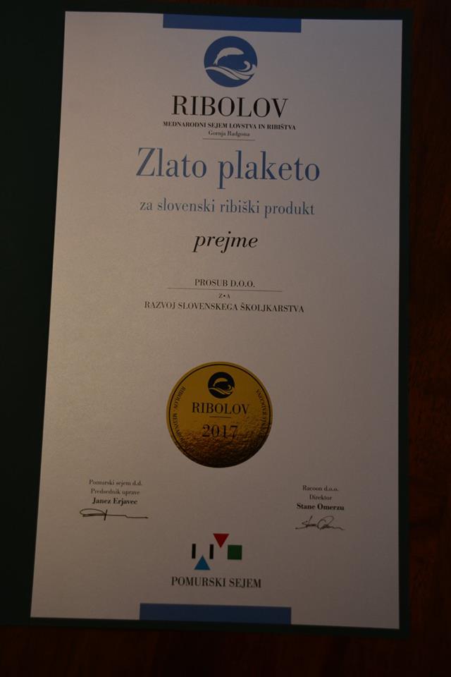 Letos aprila smo prejeli Zlati plaketi za najboljšega slovenskega školjkarja na sejmu Lov in ribolov v Gornji Radgoni. Ponosni smo, da je stroka prepoznala kakovost naših školjk in nagradila trud, ki ga vlagamo v razvoj pri gojenju domačih školjk.